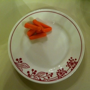 Imagine you’re sitting down for a quiet lunch. It’s just you. You’re sitting at a large, round, oak dining room table. In front of you sits a tall glass of skim milk and a small white plate holding a peanut butter and jelly sandwich on wheat bread and a half dozen of those little, bite-sized raw carrots.