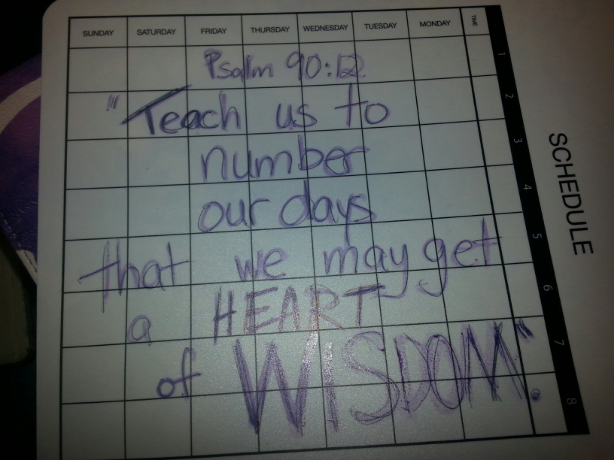 “So teach us to number our days that we may get a heart of wisdom. “