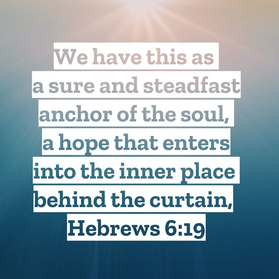 “So when God desired to show more convincingly to the heirs of the promise the unchangeable character of his purpose, he guaranteed it with an oath, so that by two unchangeable things, in which it is impossible for God to lie, we who have fled for refuge might have strong encouragement to hold fast to the hope set before us. We have this as a sure and steadfast anchor of the soul, a hope that enters into the inner place behind the curtain, where Jesus has gone as a forerunner on our behalf, having become a high priest forever after the order of Melchizedek.” – Hebrews 6:17-20 ESV