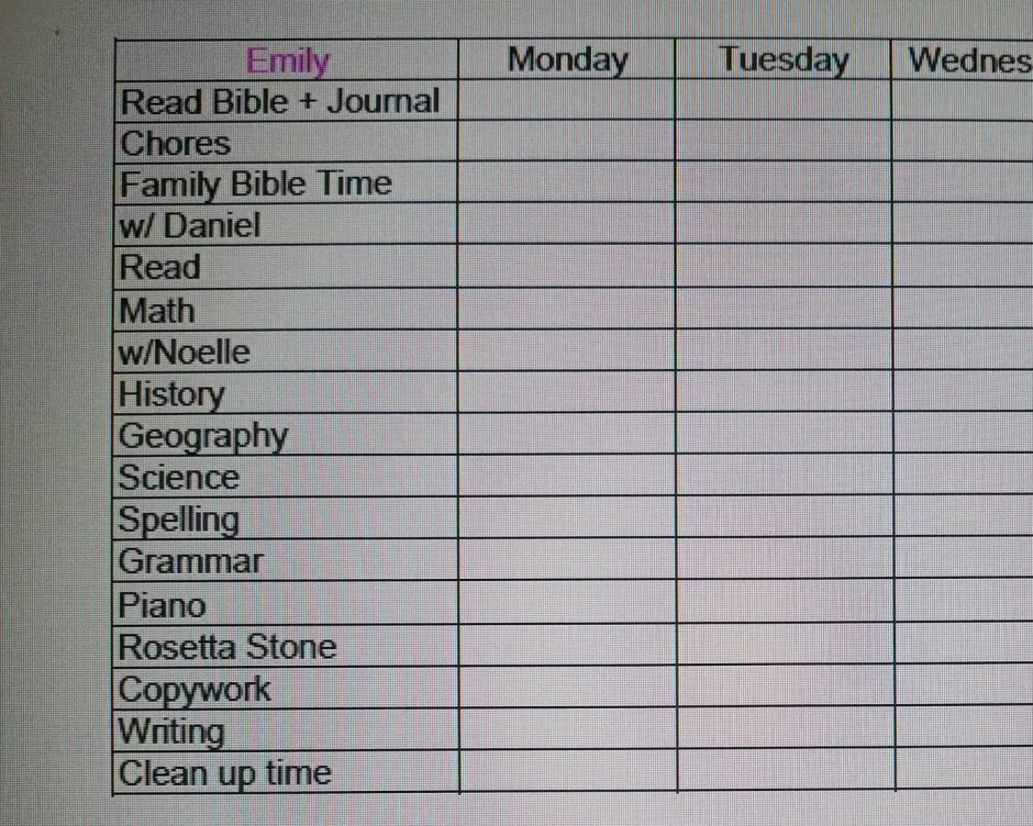 When you’re making your schedule, put what is most important first. We are committed to giving God His time first. Then, math and language arts. If that’s all you accomplish in a day, then … so be it. First things first.