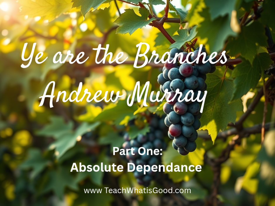 Ye are the Branches – Andrew Murray Published on August 13, 2025 by kendraske Ye are the Branches – Andrew Murray – part 1 – Absolute Dependence Ye are the Branches – Andrew Murray – part 2: Deep Restfulness and Much Fruitfulness Ye are the Branches – Andrew Murray – part 3: Close Communion and Absolute Surrender Share this: Click to share on X (Opens in new window) X Click to share on Facebook (Opens in new window) Facebook More Click to print (Opens in new window) Print Click to email a link to a friend (Opens in new window) Email Like Loading... Related