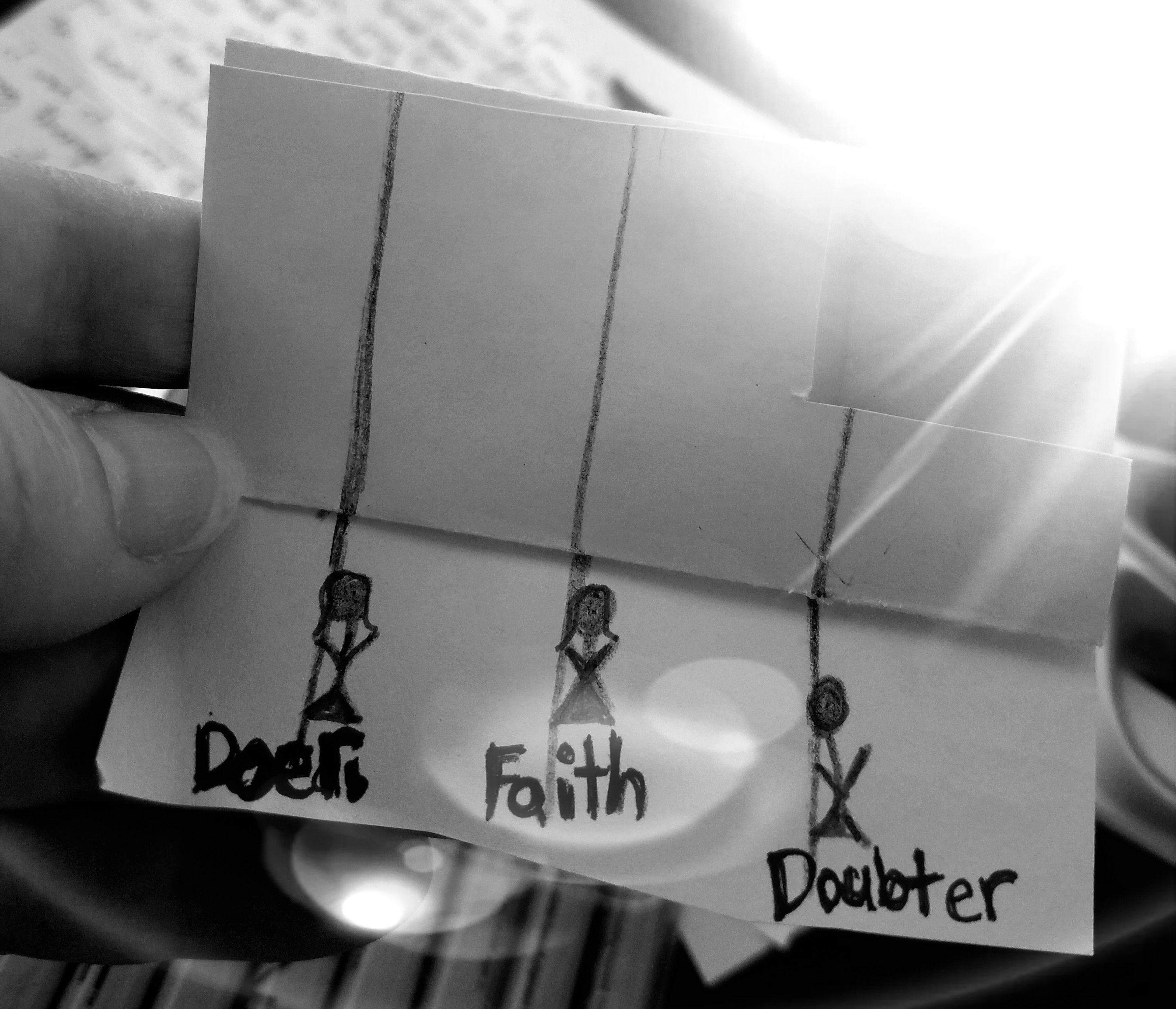 Let me tell you the story of three women: one named Doubter, one named Doer, and one named Faith. All three women had their fair share of sin, and all three women had their fair share of good deeds.